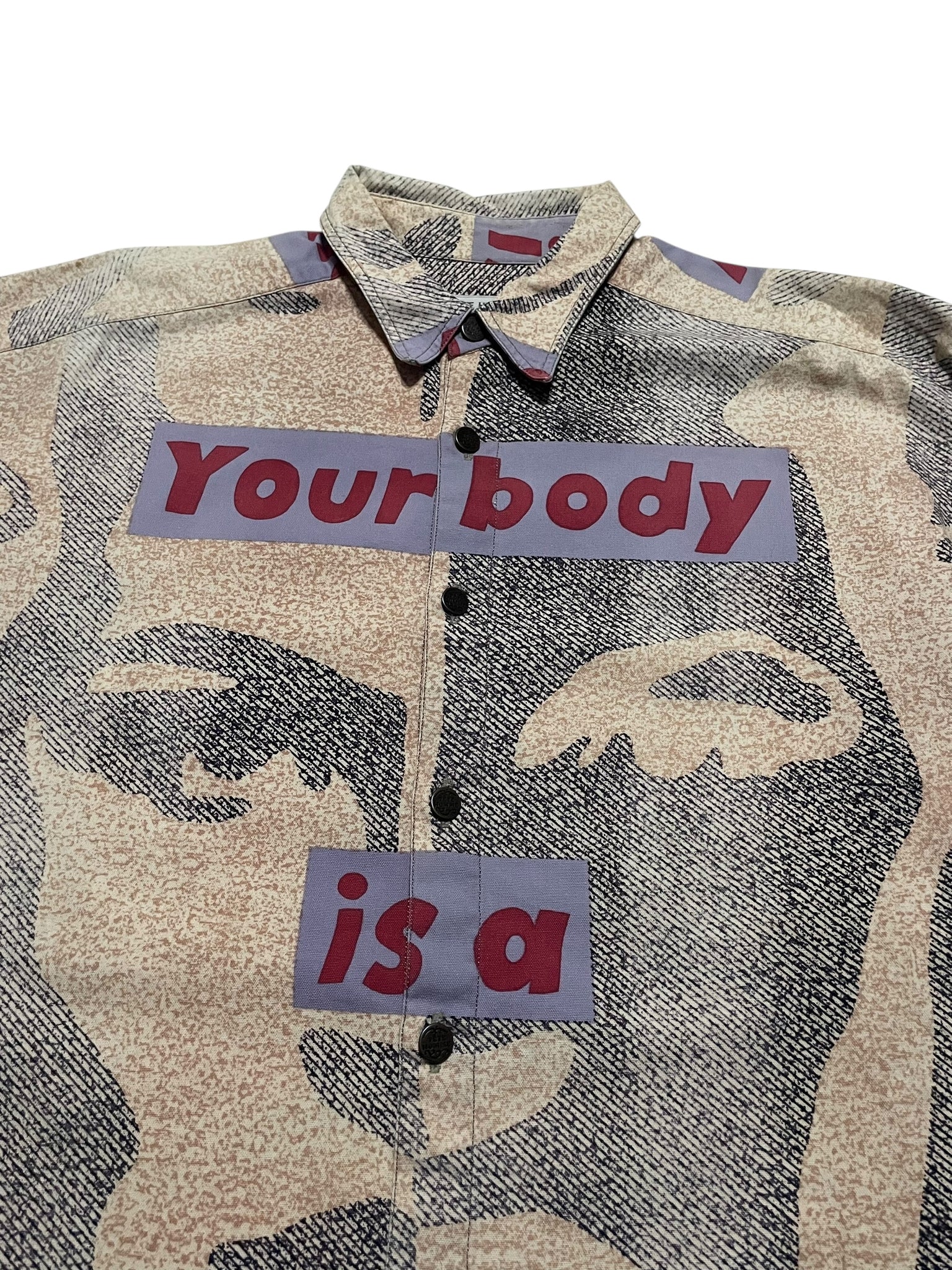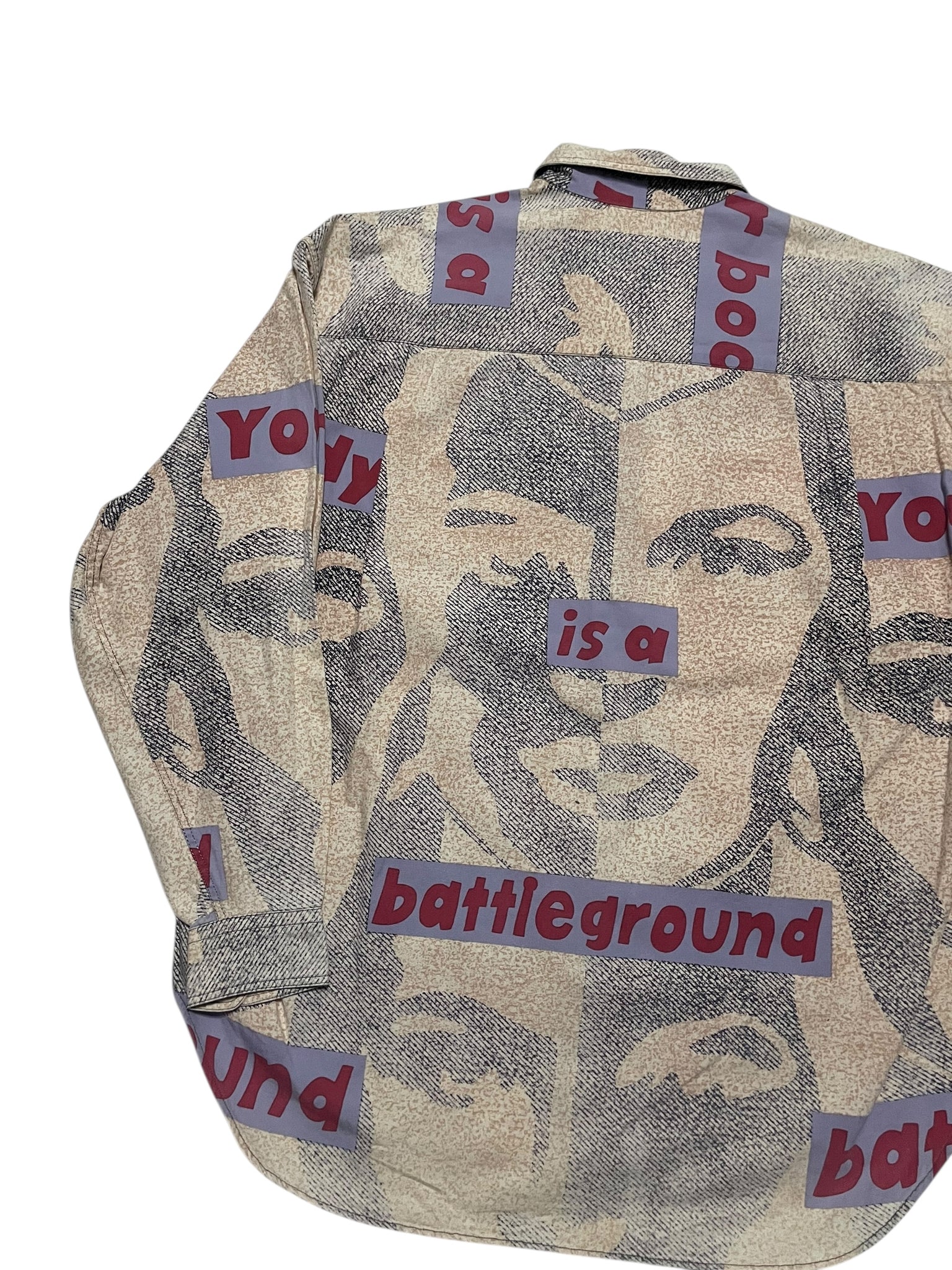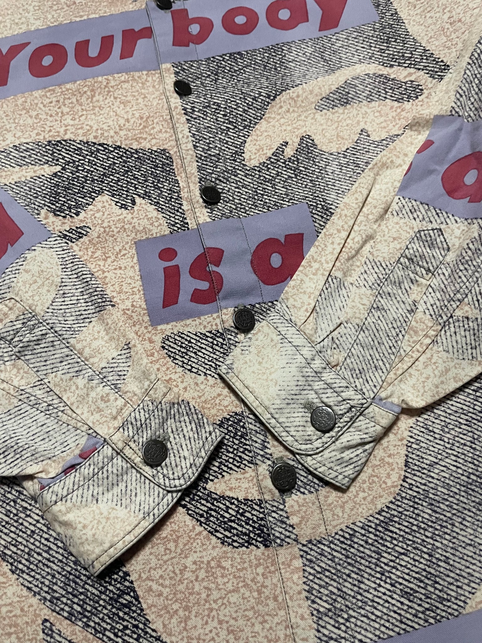 Size tag faded, measures 25“ Armpit to Armpit and 28.5” Shoulder to Bottom, 22” sleeve from shoulder.