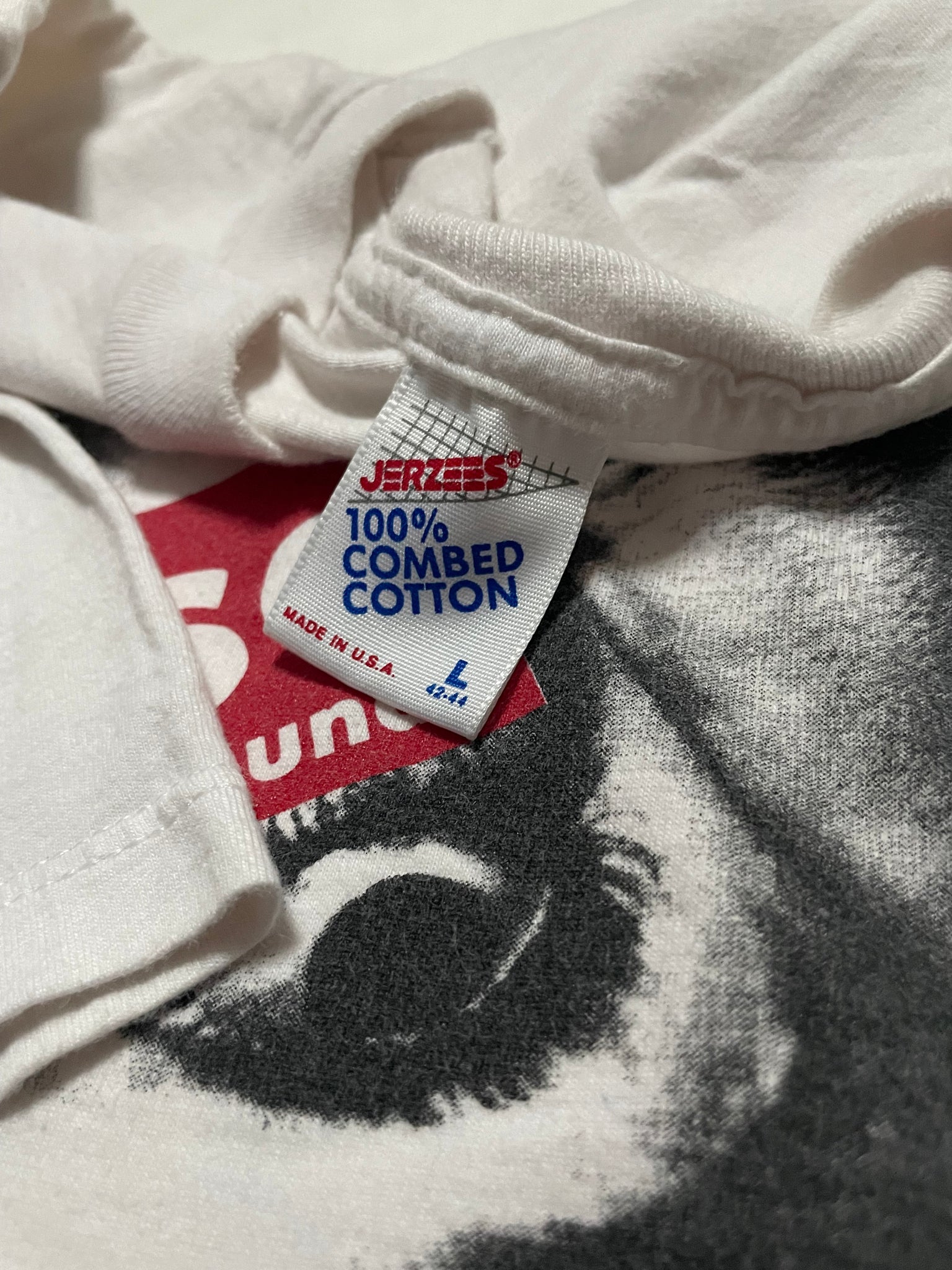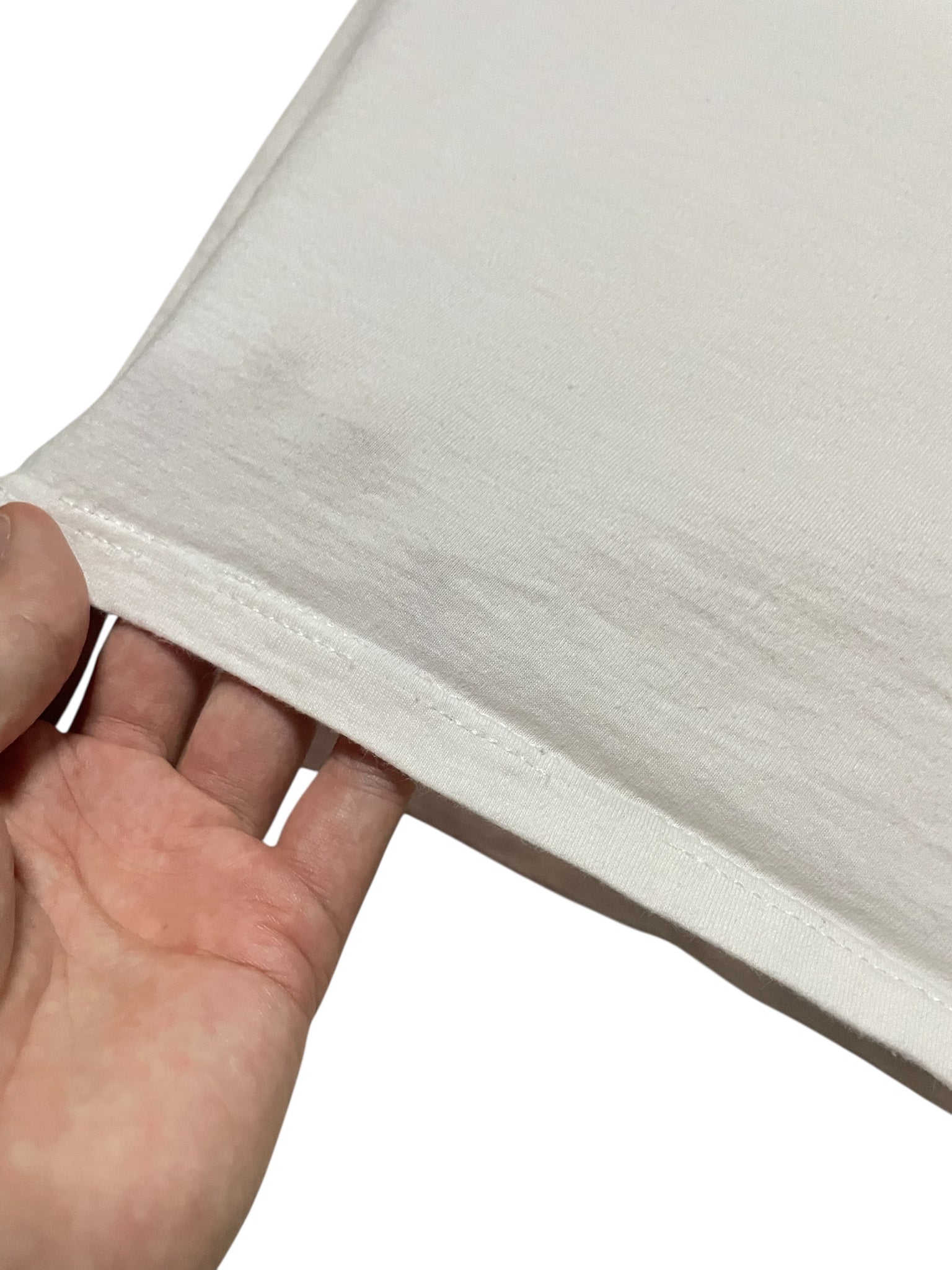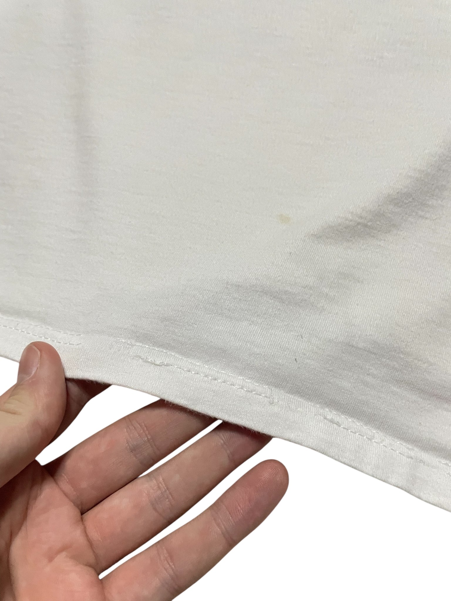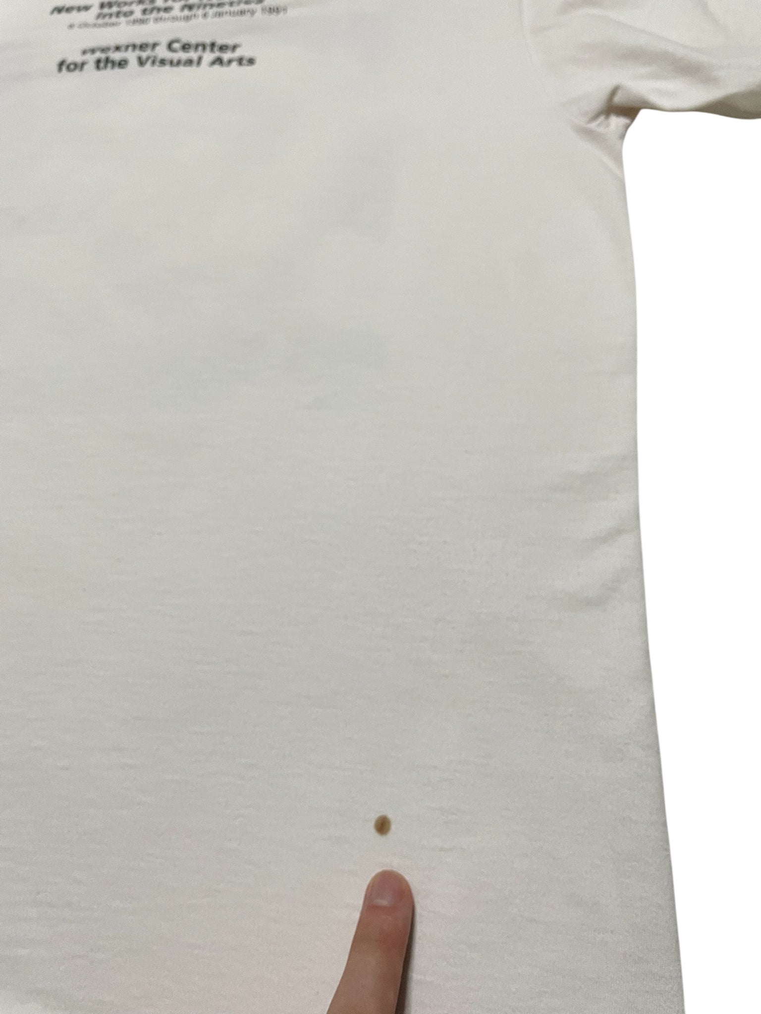 Good condition as shown with one mark towards the bottom of the back of the shirt. Has a very light pinkish tint to the shirt, somewhat difficult to notice.